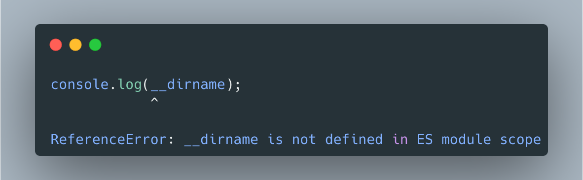 ES모듈에서 절대경로로 접근을 해야되서 __dirname을 출력해봤는데 아래와 같은 에러가 났다.